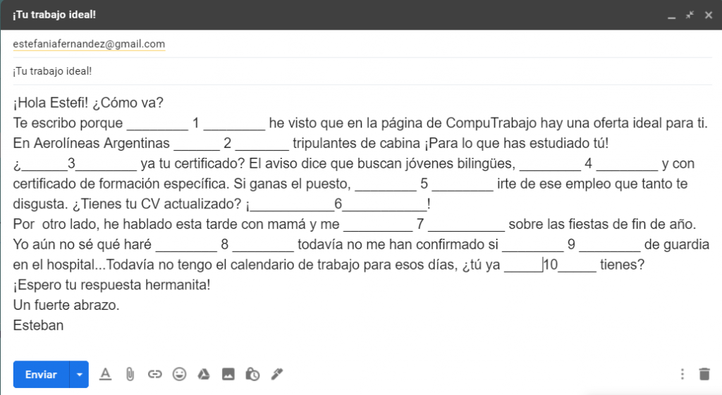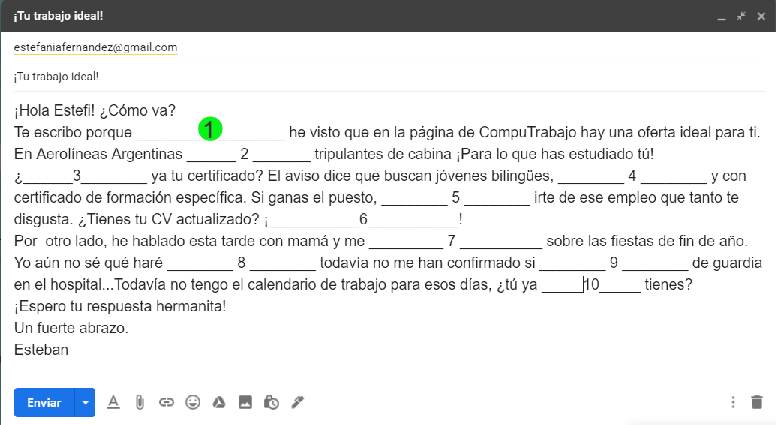 Lee y completa el siguiente correo electrónico seleccionando la opción correcta (solo hay una opción correcta):
